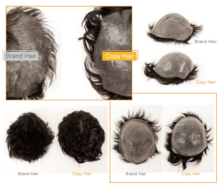 In this case, the base construction and the base material are as same as the old unit. However, based on customer's order, we changed the hair length and hair curl. After trimming, it will look exactly like the old unit, but the customer just needs to pay the half price of the original hairpiece. |
